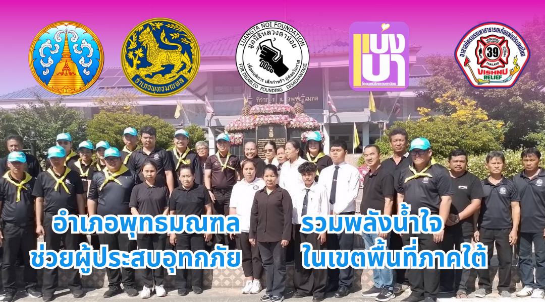 อำเภอพุทธมณฑล รวมพลังน้ำใจ ช่วยเหลือผู้ประสบอุทกภัย ในเขตพื้นที่ภาตใต้ มูลนิธิหลวงตาน้อย ร่วมกับอำเภอพุทธมณฑล นำโดย นายอิทธิพงศ์ จักษ์ตรีมงคล นายอำเภอพุทธมณฑล และหน่วยอาสาสมัครบรรเทาสาธารณภัย ใต้ 39-00 หน่วยวิษณุ พร้อมเดินทางนำสิ่งของที่ผู้มีจิตเมตตา ร่วมกันบริจาค เพื่อพี่น้องที่ประสบอุทกภัย ในเขตพื้นที่ภาคใต้ เพื่อช่วยแบ่งเบา ความเดือดร้อน ในเบื้อต้น สิ่งของที่ท่านบริจาคมา มีประโยชน์อย่างยิ่งต่อการช่วยเหลือผู้ประสบภัย ทางเราขออนุโมทนาบุญในกุศลเจตนาของท่าน ขออำนาจคุณพระศรีรัตนตรัยและสิ่งศักดิ์สิทธิ์ทั้งหลาย จงดลบันดาลให้ท่านและครอบครัว ประสบแต่ความสุข ความเจริญ มีสุขภาพแข็งแรง ปราศจากโรคภัยทั้งปวง